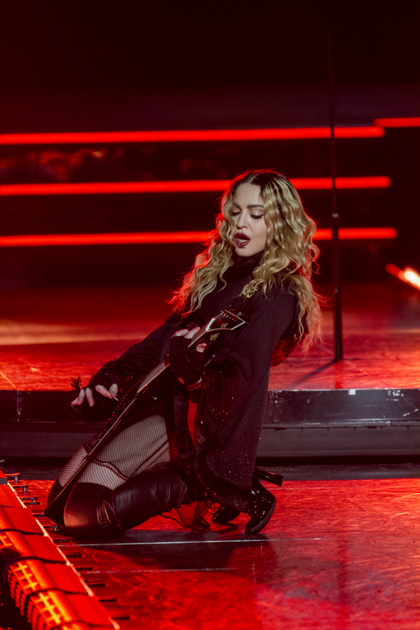 Madonna in Louisville, at the YUM! center. She took the stage about 3 hours late, but did a great show. Her people took my point and shoot, which I used to take the stunning image of her standing on the table, telling me that I couldn’t use it. They erased the photos from the card, but I recovered them when I got home. Then, about 5 months later, I found this image on a Madonna Facebook page in Japan. This image has never been published, except has been displayed on OnstageMagazine, and I made her look incredible.